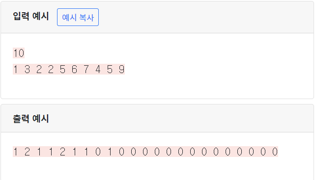 for i in range(n): #๋ฒํธ๋ฅผ ๋ถ๋ฅผ ๋๋ง๋ค, ๊ทธ ๋ฒํธ์ ๋ํ ์นด์ดํธ 1์ฉ ์ฆ๊ฐ