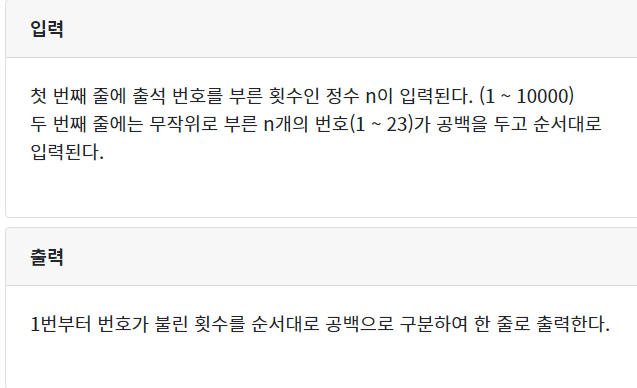 n = int(input()) # ์ถ์๋ฒํธ๋ฅผ ๋ถ๋ฅธ ์ด ํ์