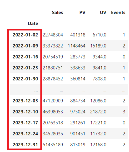 Date ์ปฌ๋ผ์ ๋ณด๋ฉด ์ฃผ ๋จ์๋ก ๋ณ๊ฒฝ ๋ ๊ฒ์ ๋ณผ ์ ์๋ค.