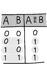 input 2개가 모두 모두 boolean값이 False인 경우에만 결과값으로 False를 반환하고, 나머지는 모두 True를 반환한다.
